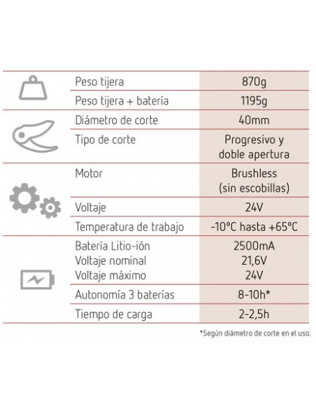 - CUT PREVENT SYSTEM protege de cualquier corte, la tijera se para en contacto con la pieldel podador.