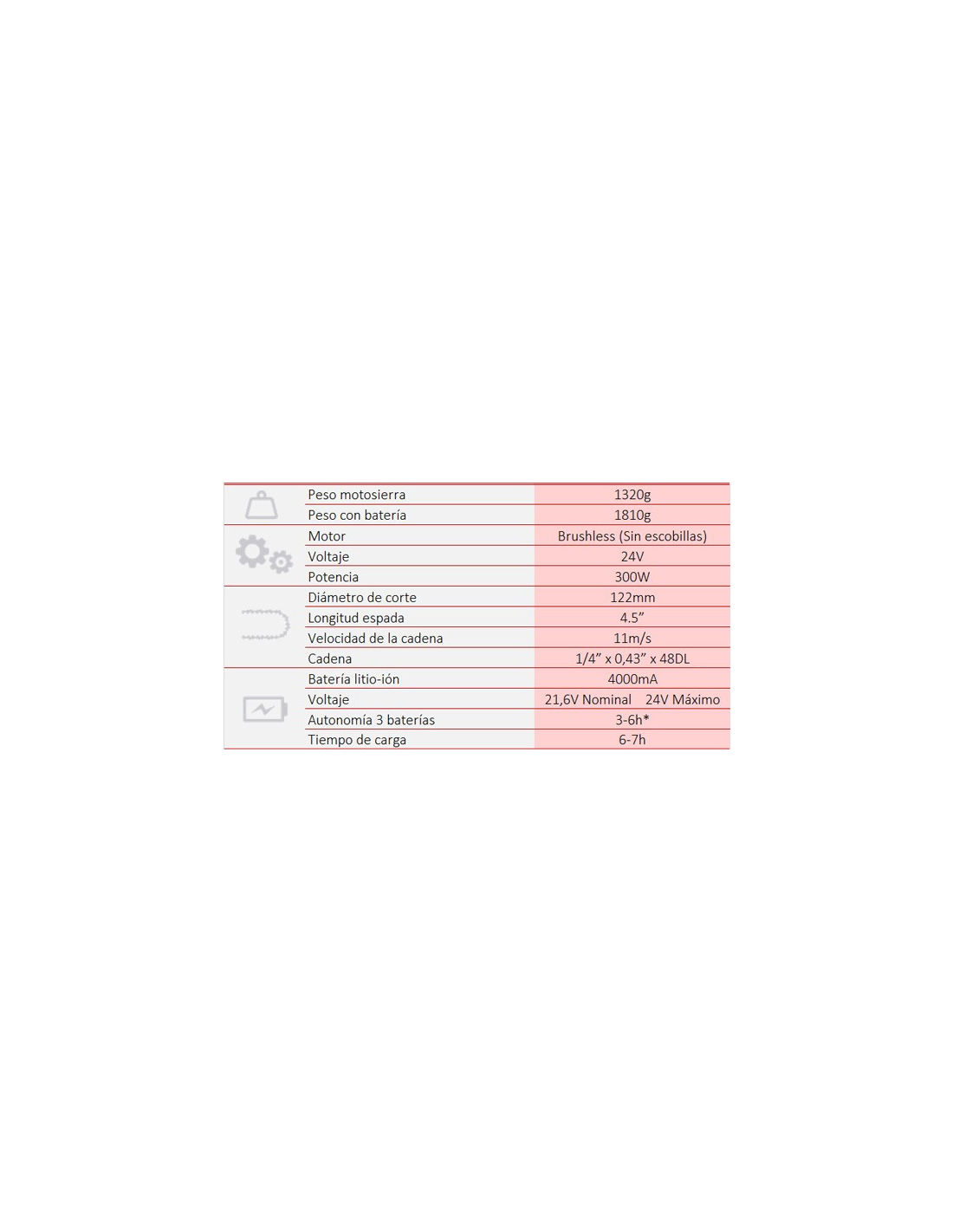 Concentra toda la potencia de corte de una motosierra en una sola mano y sin cable.