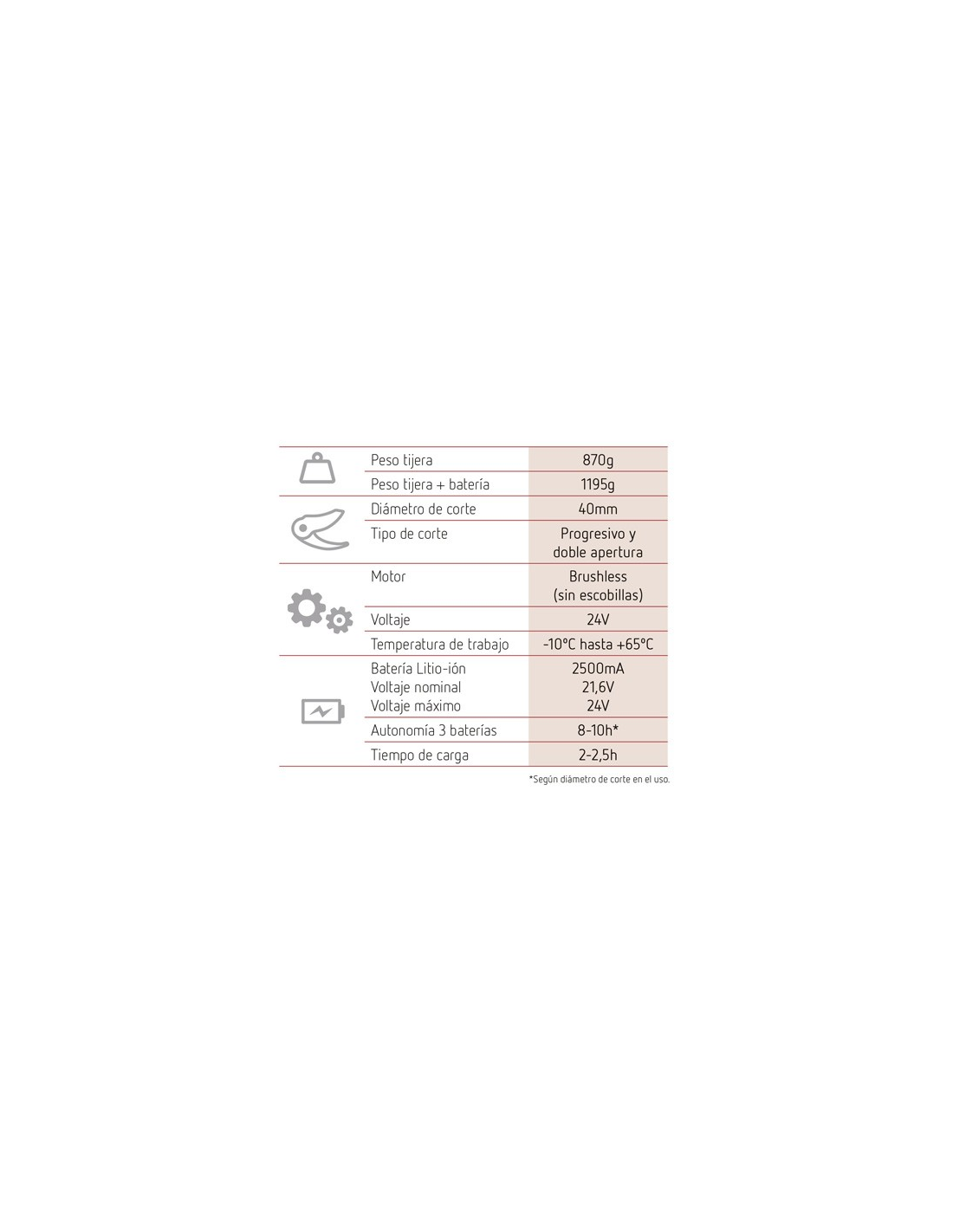 Capacidad de corte: 2,5 Ah